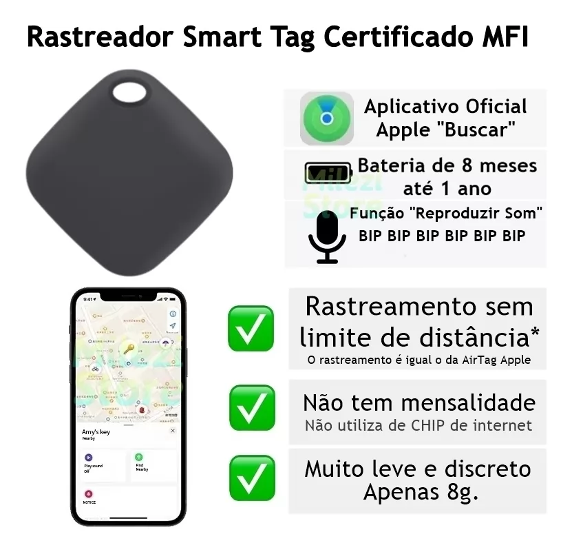 Rastreador Smart AirTag MFI Compatível com app Buscar do iPhone Apple